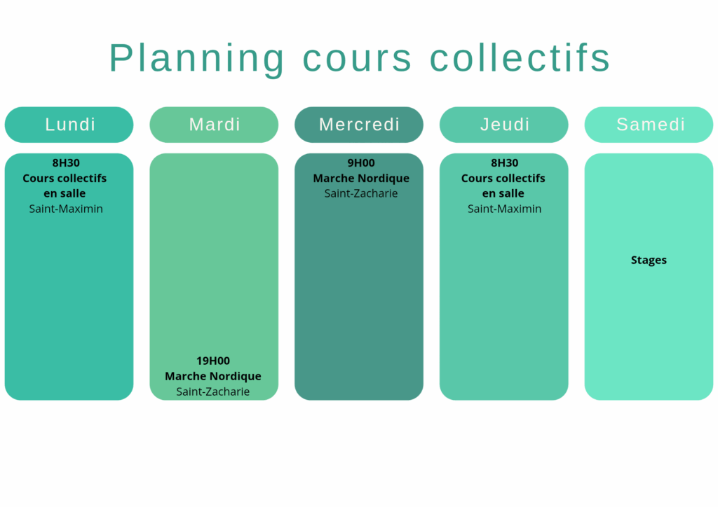 👉 Quelques places restantes pour les cours collectifs en salle et dans le groupe de Marche Nordique du mercredi